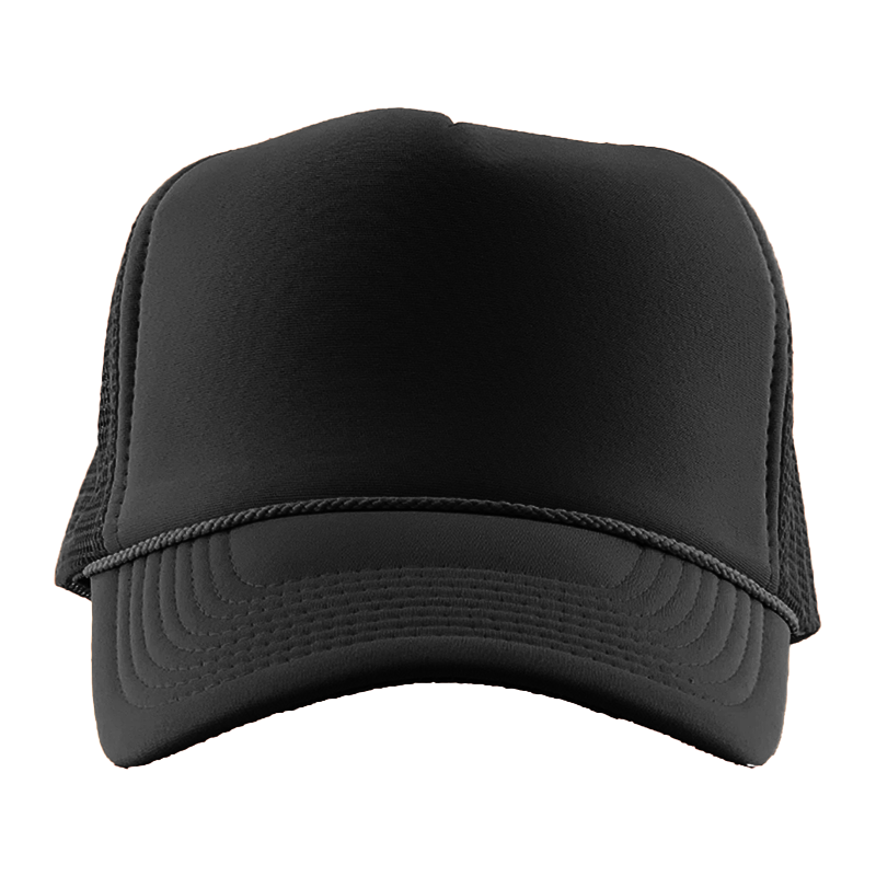Classic trucker hat with structured cotton front and breathable polyester mesh back. Adjustable snapback closure — ready for custom embroidery.