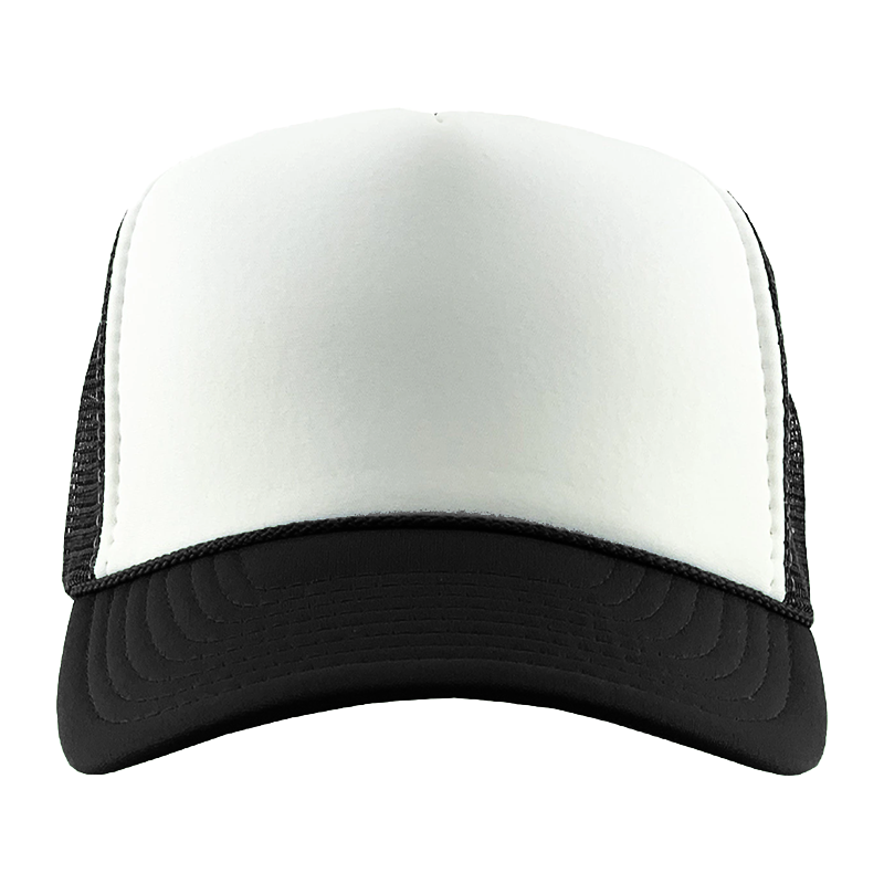 Two-tone trucker hat with contrasting cotton front panel and polyester mesh back. Adjustable snapback closure β customize with your embroidered design.