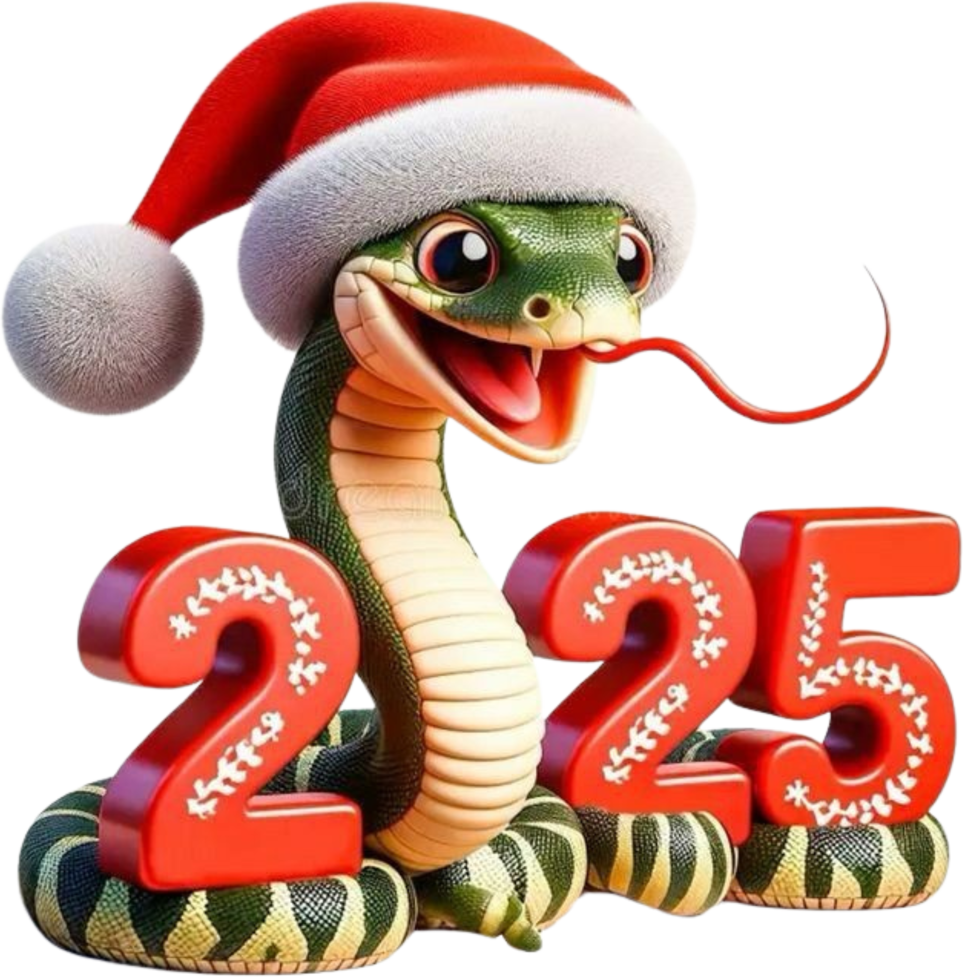 A cartoon snake wearing a Santa hat and the number 225