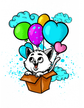 A cartoon cat with balloons and the phrase 'I WOULD SPEND 9 LIVES WITH YOU'