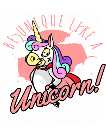 A cartoon unicorn with the words 'Be unique like a unicorn!'