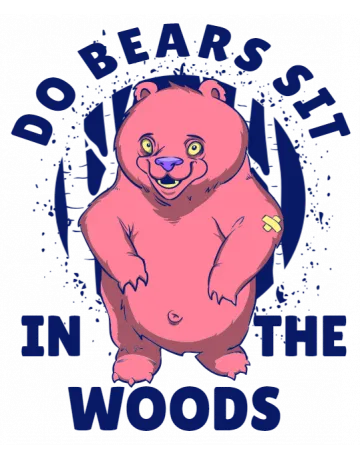 A cartoon bear with the words 'Do bears sit in the woods' around it.