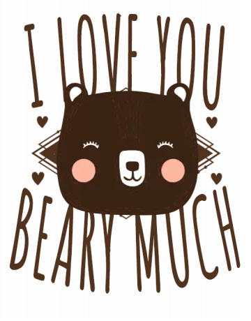 A cute cartoon bear with the text 'I love you beary much' in a playful font.