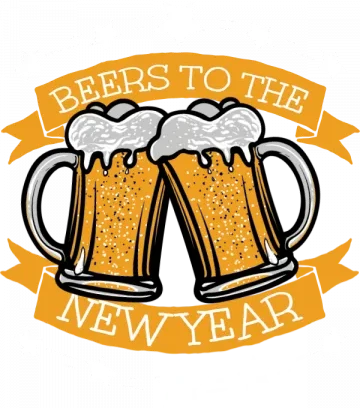A t-shirt design featuring two beer mugs with a banner saying 'BEERS TO THE NEW YEAR' and stars around it.