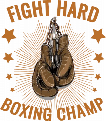 A boxing glove surrounded by stars and text, with a vintage style