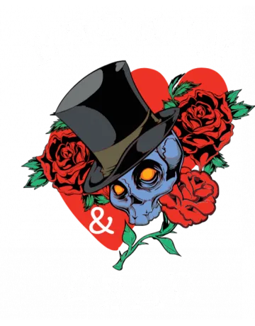 A skull wearing a top hat, surrounded by roses, with the words 'BROKEN & DEAD' written in a bold font.