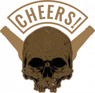 A skull with a banner saying 'CHEERS!'