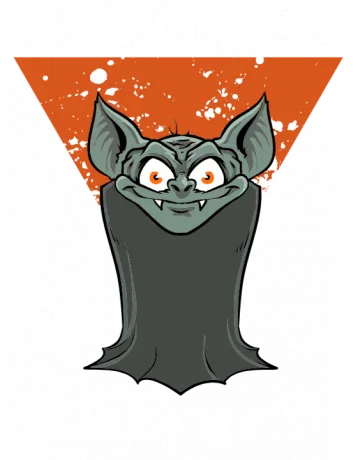 A cartoon bat with a wide grin and pointed teeth, surrounded by the words 'FREE CANDY?' and 'COUNT ME IN' in a bold, playful font.