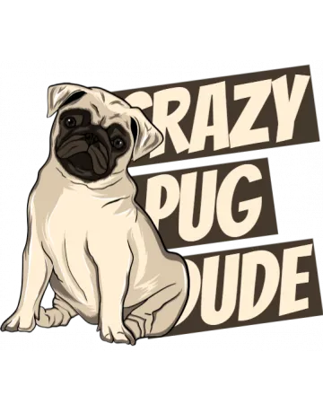 A cartoon pug with the words 'CRAZY PUG DUDE' in a stylized font.