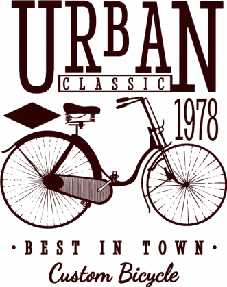 A t-shirt design featuring a bicycle and the words 'URBAN' and '1978' in red text.