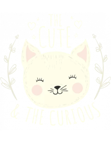 A cartoon cat face with the text 'the cute & the curious' surrounding it.