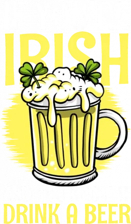 A t-shirt design featuring a beer mug with the text 'If you're Irish and you know it drink a beer' in a playful, cartoonish style.