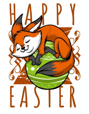A cartoon fox sleeping on a green Easter egg with 'Happy Easter' written above it.