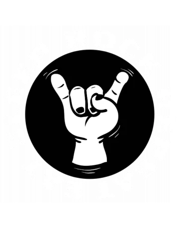 A hand making the 'rock on' sign surrounded by the words 'SLEEP ROCK REPEAT' in a circle.