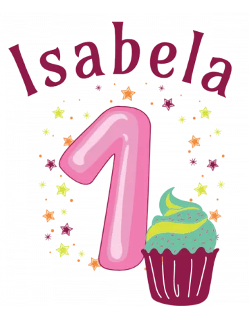 A pink number one with a cupcake and stars
