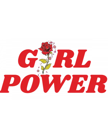 The design features a rose and the words 'GIRL POWER' in red letters on a black background.