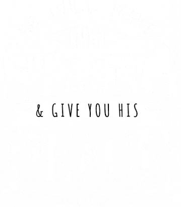 A black and white design featuring the Bible verse 'He will make you strong and give you peace' in a stylized font.