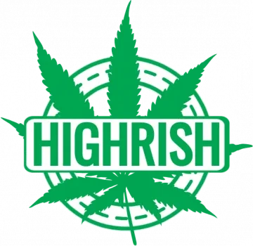 A green cannabis leaf logo with the word 'HIGHRISH' in the center.