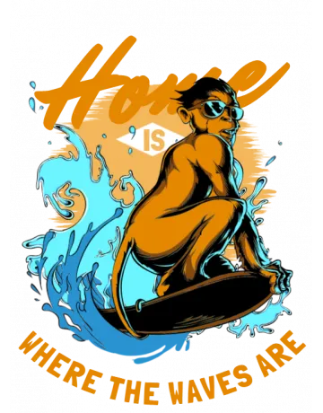 A cartoon monkey riding a wave with the phrase 'Hooray is where the waves are' in orange text.