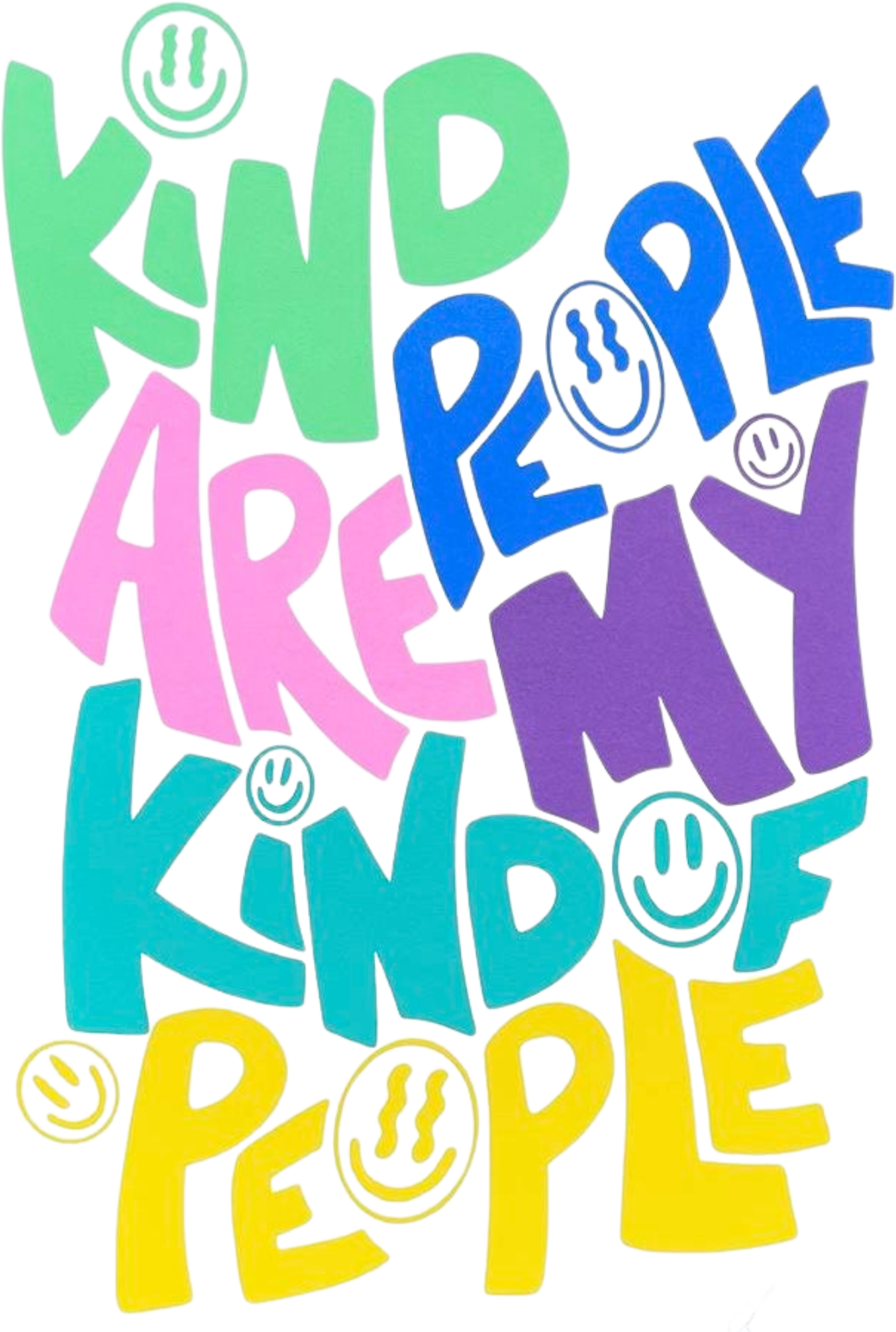 A playful design featuring the phrase 'Kind are my people' in a colorful, playful font.