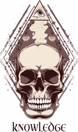 A skull with an eye in the triangle and diamond shapes.