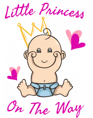 A cartoon baby with a crown and hearts, featuring the phrase 'Little Princess On The Way'