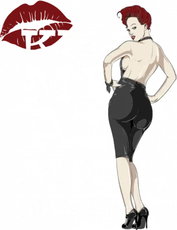 A woman in a provocative outfit with the phrase 'KISS ME AT MIDNIGHT' written in large white letters.