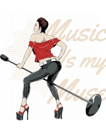 A woman with a guitar and the words 'Music Is My Muse' in a stylized font.