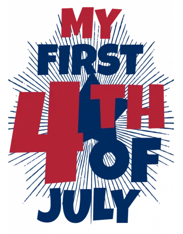 A graphic design featuring the text 'My First 4th of July' in red and blue block letters.