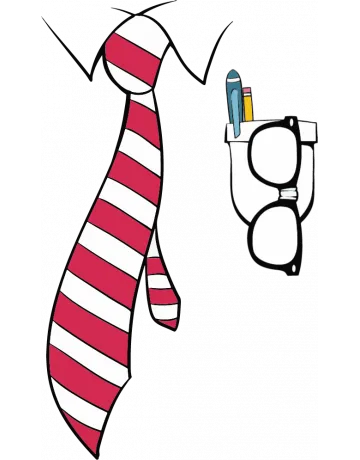 A cartoon-style illustration of a person with a striped tie and a pocket watch.