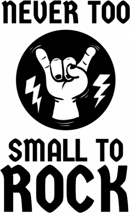 A hand with the thumb and index finger extended to form a 'rock on' symbol, with a lightning bolt on each side.