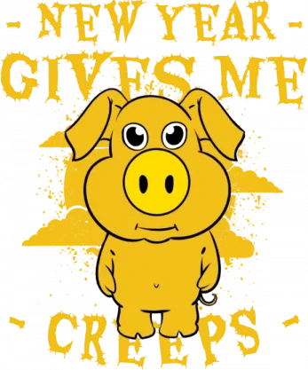 A cartoon pig with the words 'New Year Gives Me Creeps' in yellow text.