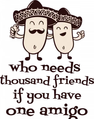 A cartoon image of two smiling characters wearing sombreros with text about friends