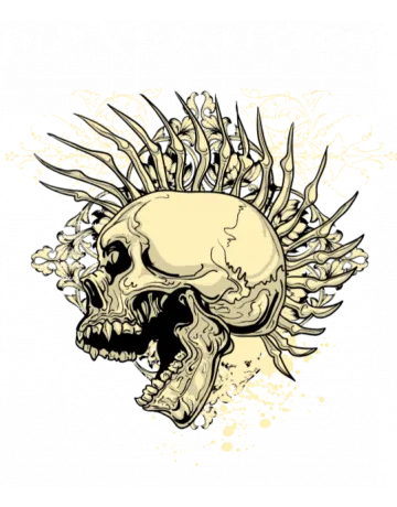 A skull surrounded by leaves and vines, with the words 'punk's not dead' written in a stylized font.