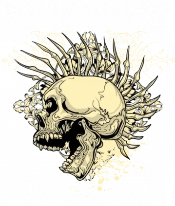 A skull surrounded by leaves and vines, with the text 'punk's not dead' at the top.