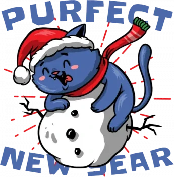 A cartoon cat wearing a Santa hat and scarf, with a snowman body.