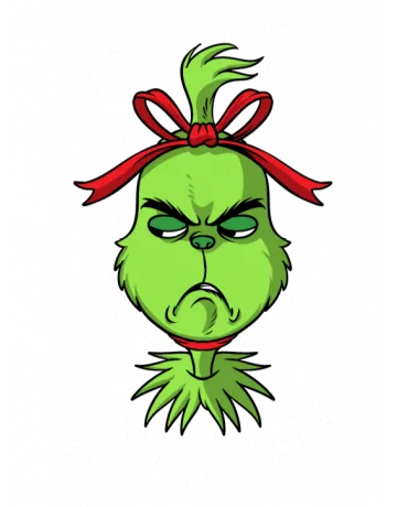 A cartoon face with a red bow and the words 'RESTING GRINCH FACE' in white text