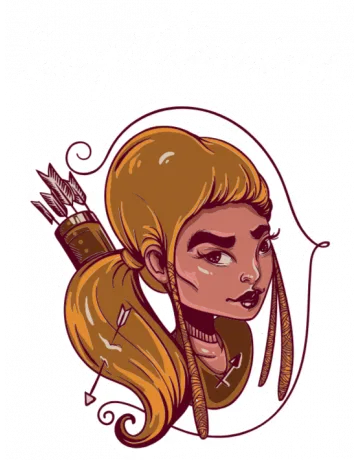 A cartoon illustration of a woman with blonde hair and an arrow in her hand.