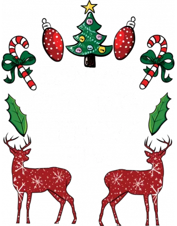 A festive holiday design featuring a Christmas tree, candy canes, and a deer with the phrase 'Santa's coming, I know him' in white text.