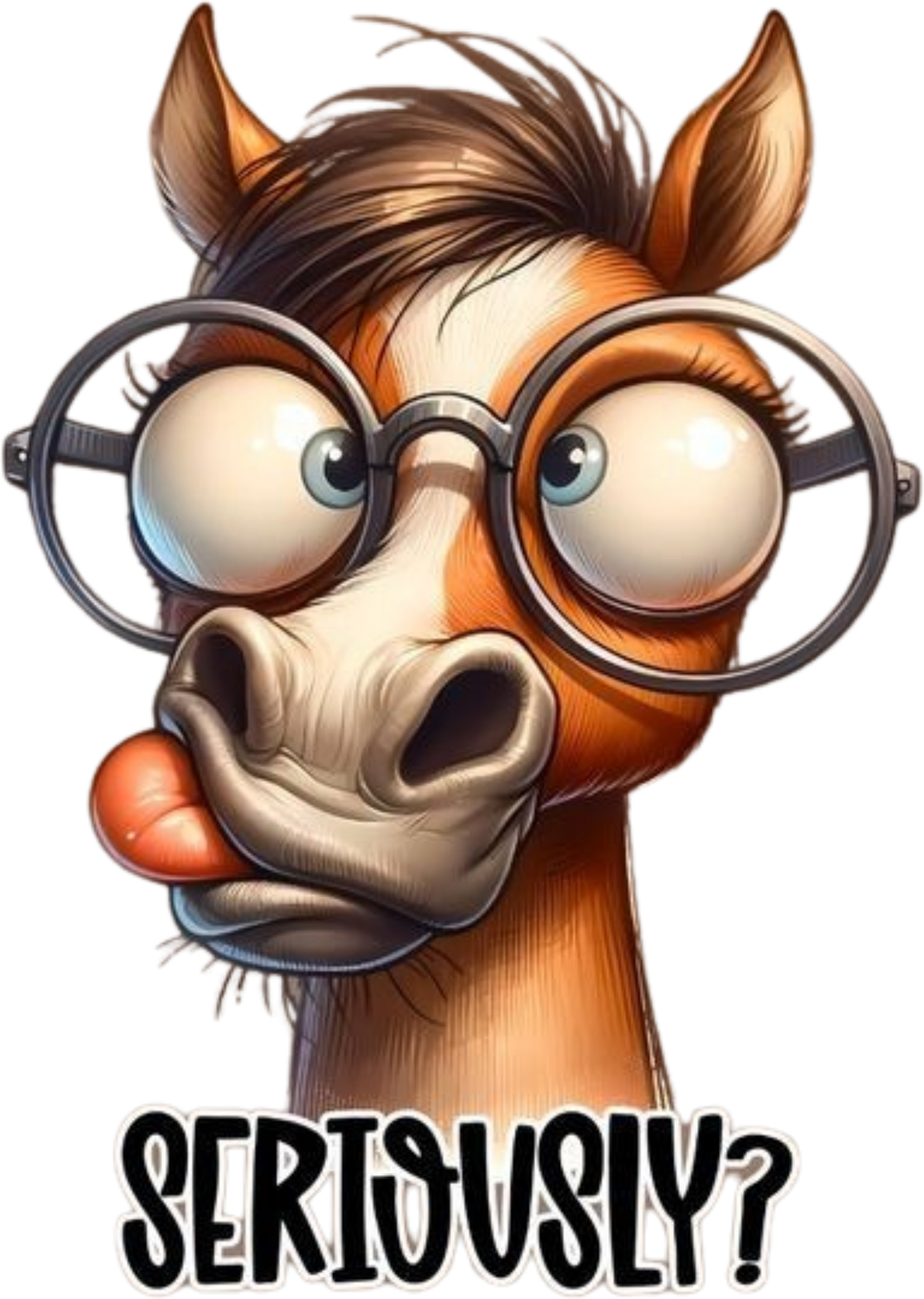 A horse wearing large, round glasses with the text 'SERIOUSLY?' below it.