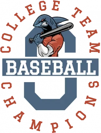 A cartoon character holding a baseball bat in front of a large 'S' with 'BASEBALL' text, surrounded by 'COLLEGE TEAM CHAMPIONS' text.