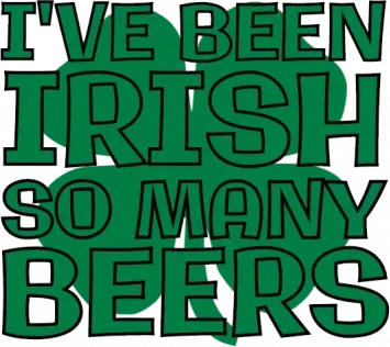 A t-shirt design with the phrase 'I'VE BEEN IRISH SO MANY BEERS' in green text on a black background.