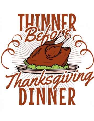 A graphic design featuring a plate of food with the words 'THINNER Before Thanksgiving DINNER' written around it.