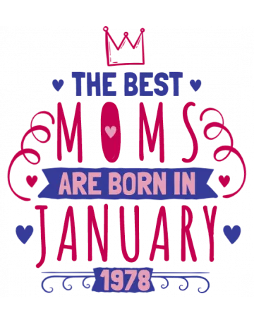 The best moms are born in January typography design with hearts and crown.