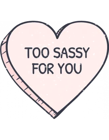 A heart with the words 'TOO SASSY FOR YOU' in the center.