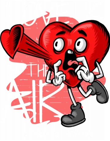 A cartoon heart with a megaphone and the words 'Love is in the air' and 'Try not to breathe' written around it.