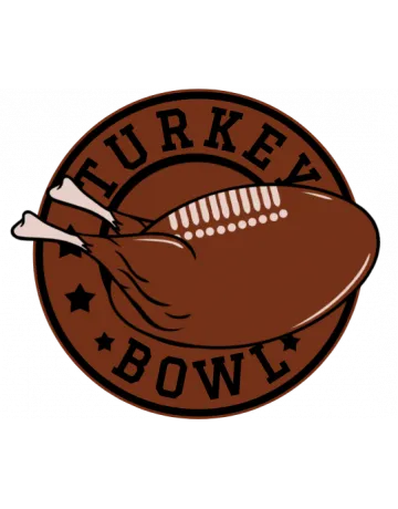 A circular logo with a turkey bowl design, featuring a brown circle with a turkey leg and bone, and the words 'Turkey Bowl' in brown text.
