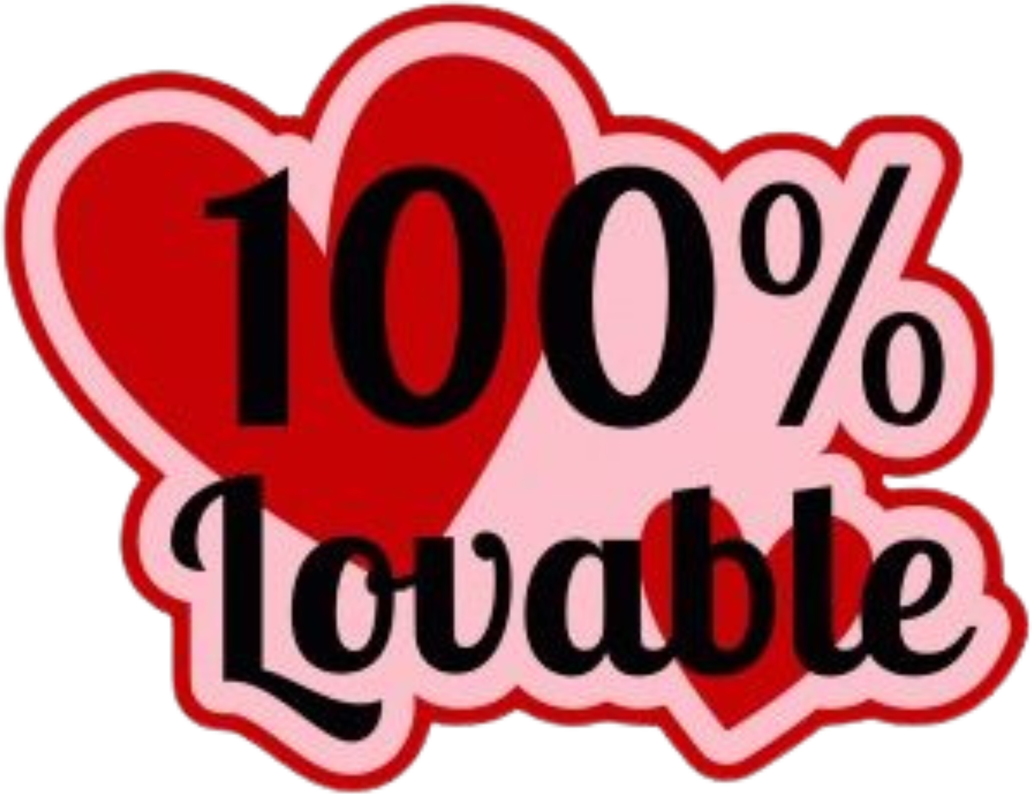 A red heart with '100% Lovable' written inside it.