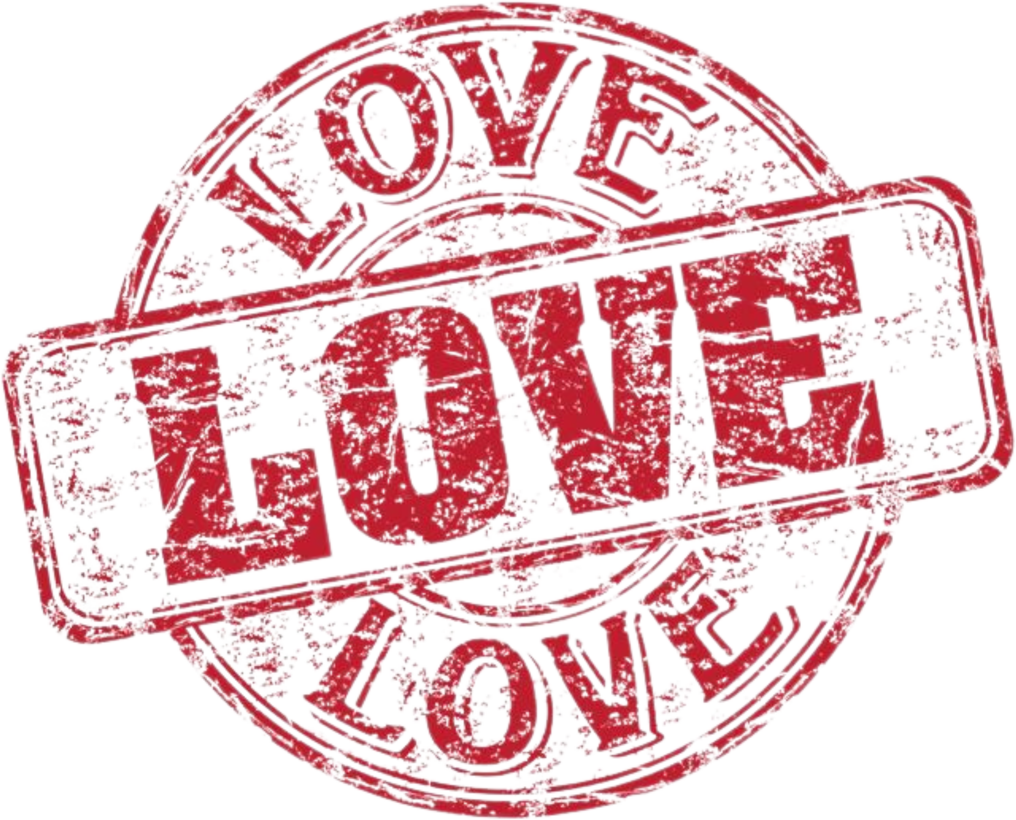 A distressed stamp with the word "love" in red, set against a solid black background.