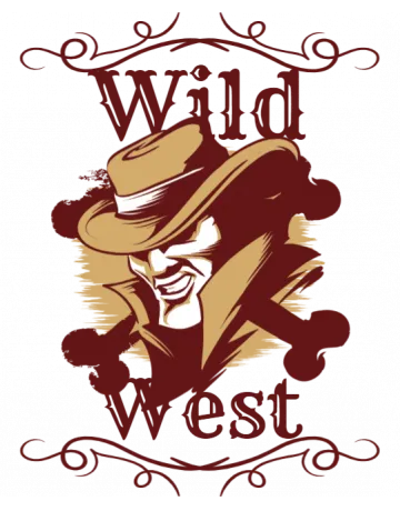 A man's face in a cowboy hat, with the words 'Wild West' written above him.